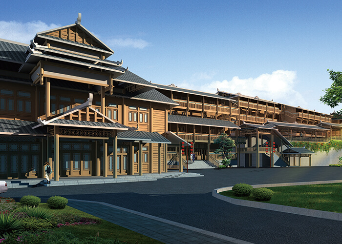 社會主義新農村民居建設,不是簡單地拷貝和復制中國傳統院落形式。運用于本案,我們不是在進行仿古建筑的設計,我們摒棄過于復雜與太過傳統的斗拱、椽檁等建筑符號。抽取傳統院落中的白墻、青瓦、庭院等符號,重新融合構置進全新的建筑肌理之中,賦予現代院落以生命,使其融入現代生活,成為我們的生活中的一部分。在沿街的建筑設計中,采用聯排式、開敞式設計,形成一種商業氛圍,與環境設計中的廣場、露天舞臺等一起,服務于旅游,讓游客不止成為過客,讓游客留下來,有玩、有住、有看,有紀念品買。