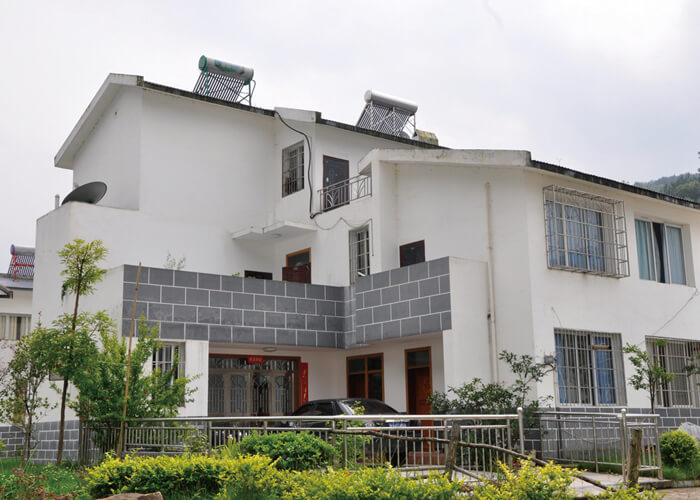 最后,因當地不產小青瓦,本著就地取材、經濟適用的原則,不得不棄用小青瓦的設計改為灰藍色雙曲瓦,留下些許遺憾。