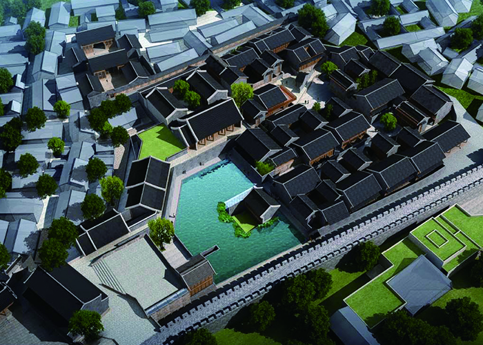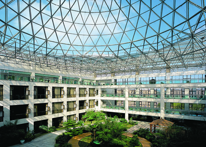 其一,上部仿古建筑物采用鋼框架結構形式,用老青磚作為填充墻使用。